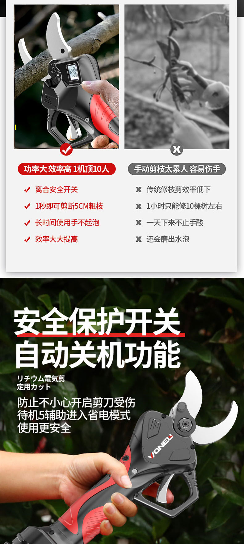 电动剪刀果树修枝剪充电式电剪刀锂电强力园林剪树电剪子剪枝神器