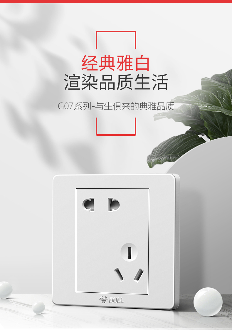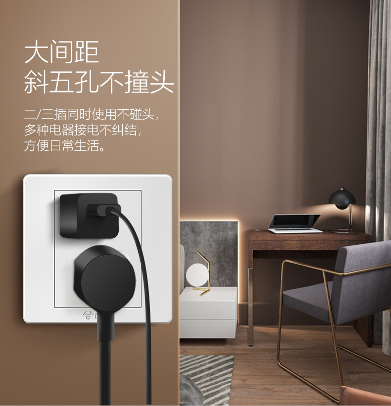 公牛开关插座面板斜五孔10A错位五孔5孔插座