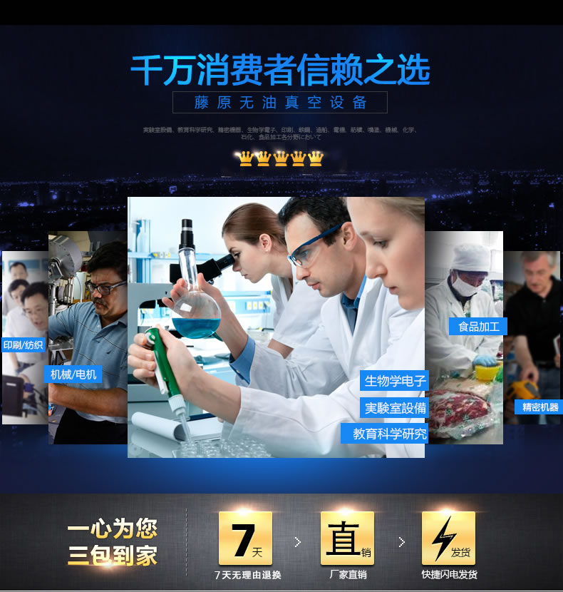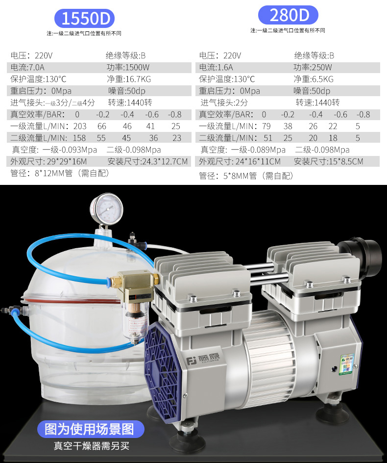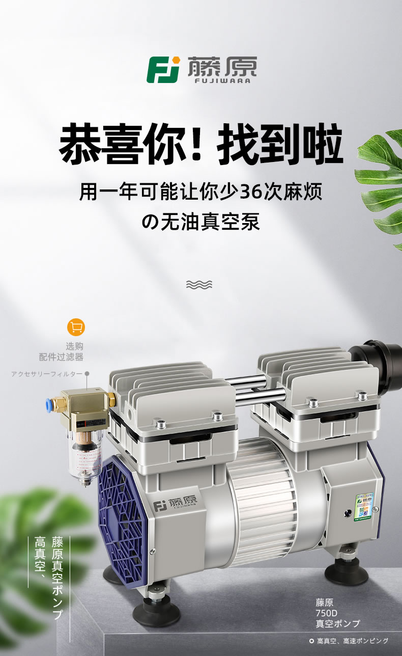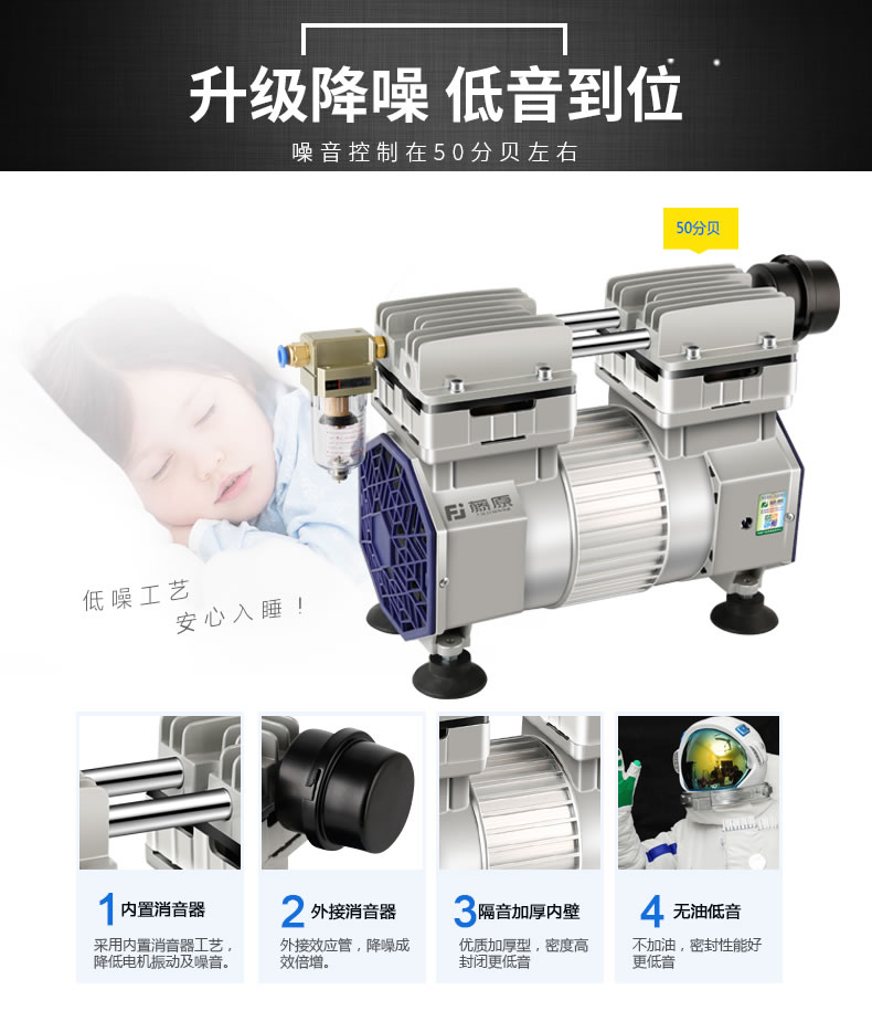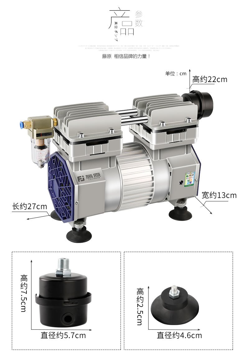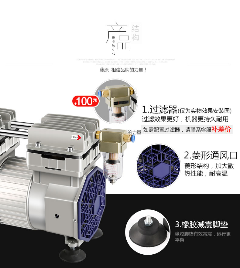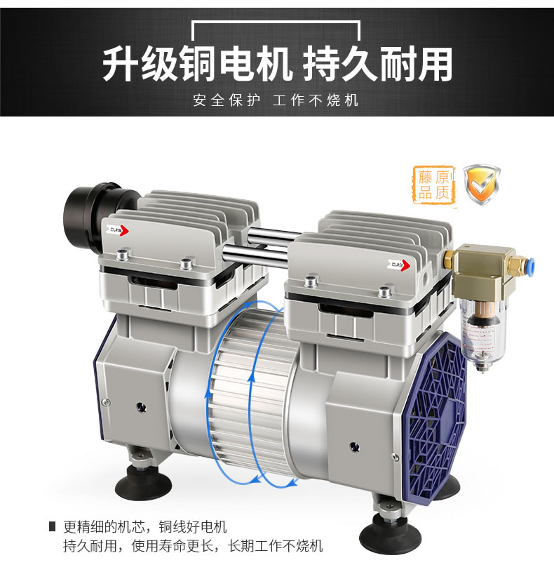 藤原无油真空泵机头 静音抽气泵抽真空机器负压泵大流量高真空泵