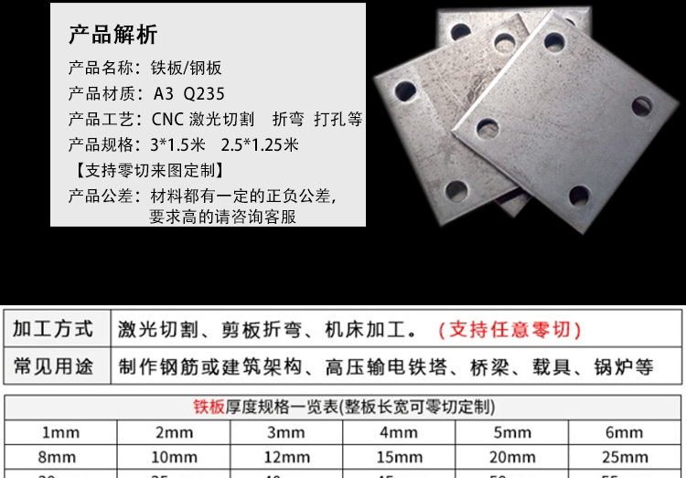 铁板加工定制钢板激光切割铁扁条镀锌铁皮冷轧板钢材3-10mm厚零切