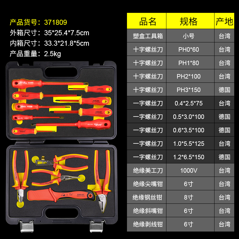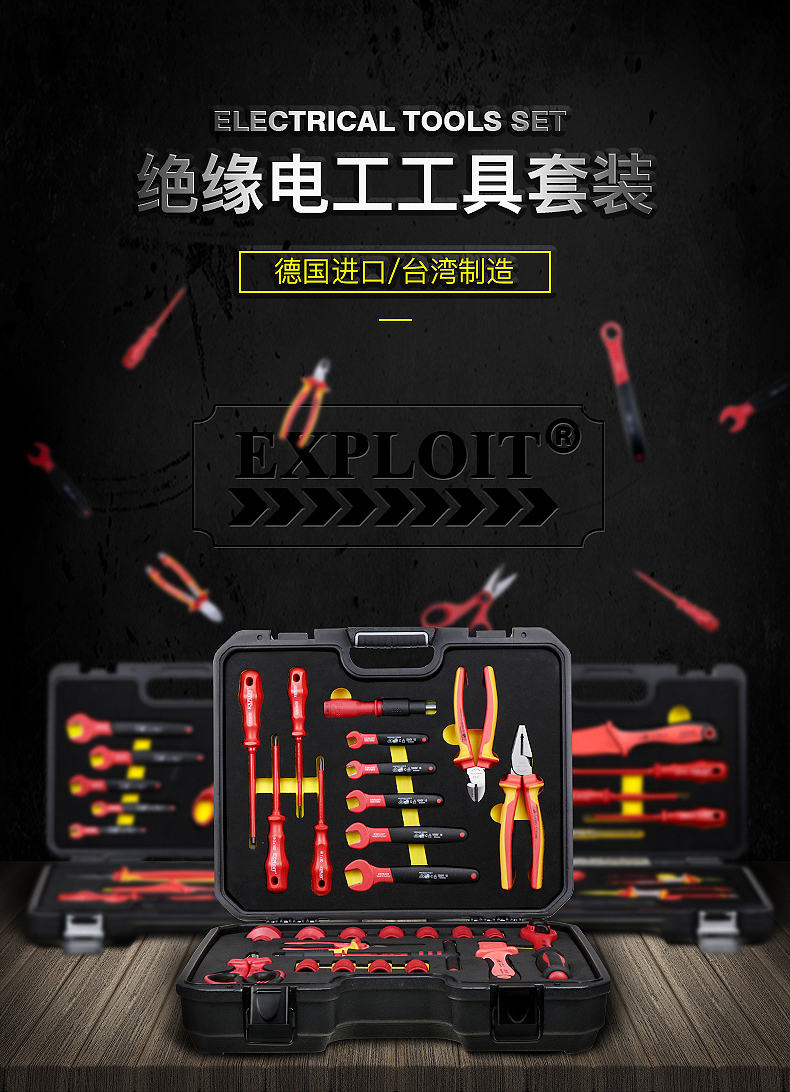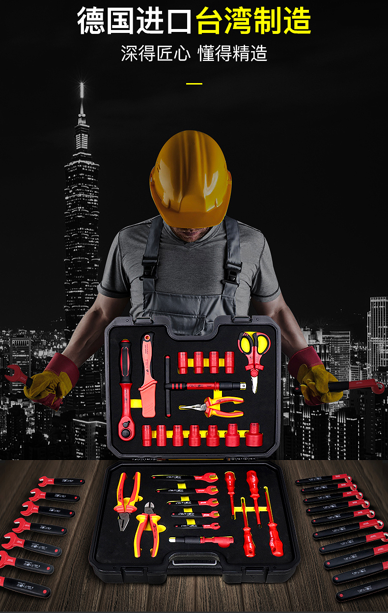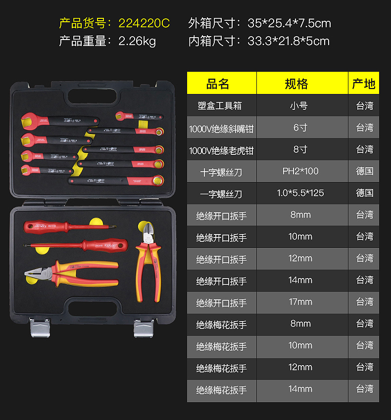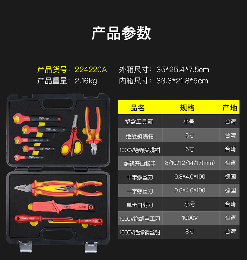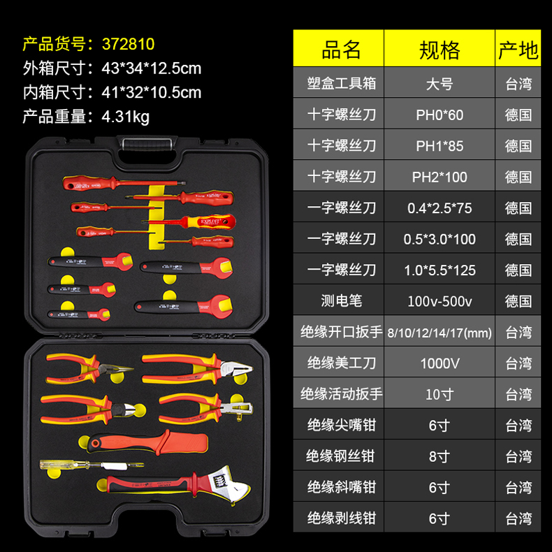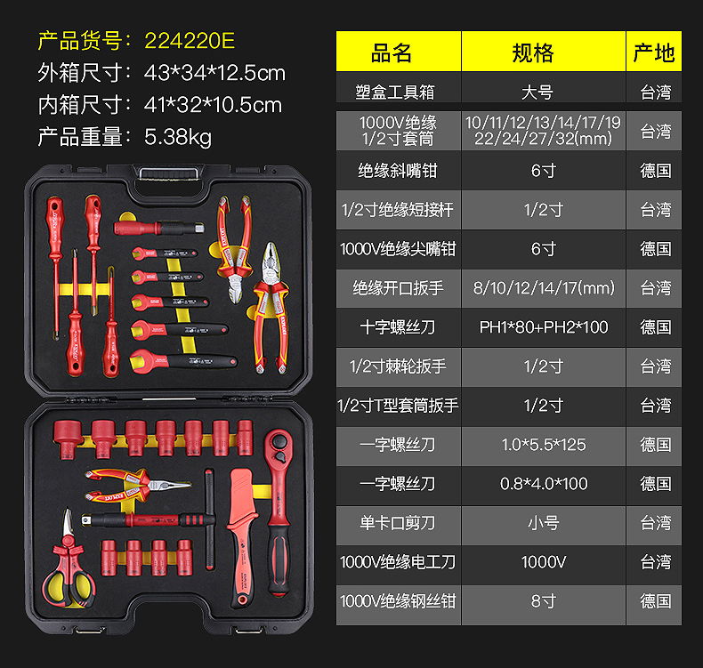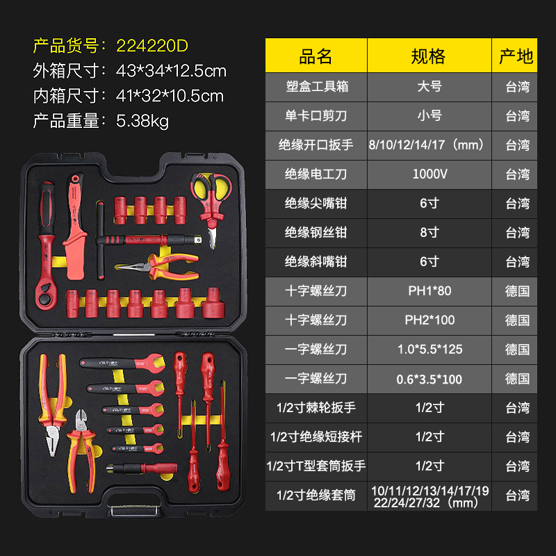 开拓绝缘工具套装台湾德国进口VDE认证1000V耐压电工专用工具组套