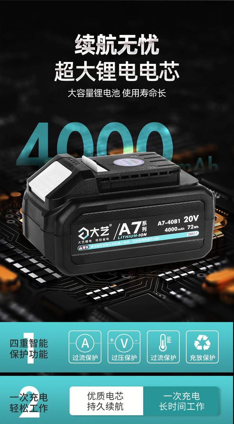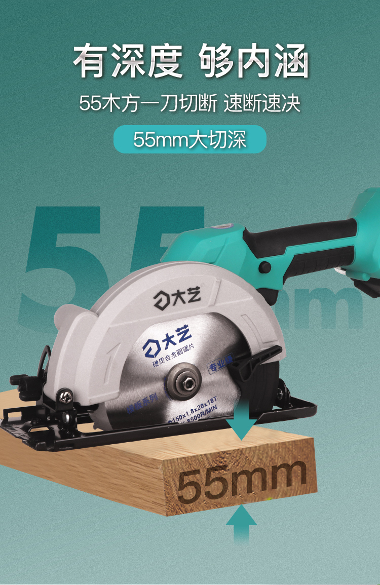 大艺充电式电锯5/6寸无刷锂电充电切割机A7-8802手持式电圆锯8805